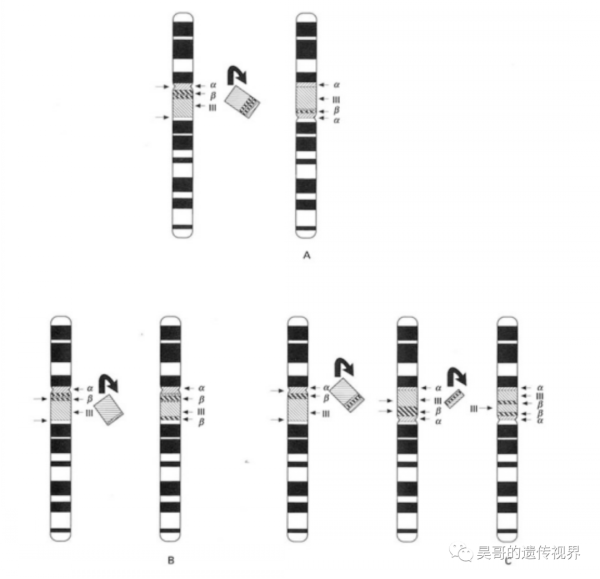 另外,昊哥猜想(特别申明:只是猜想)对于inv(9)这样的重复片段倒位,其减数分裂的联会和交换方式可能会跟常规的倒位不一样,下面展开说明。