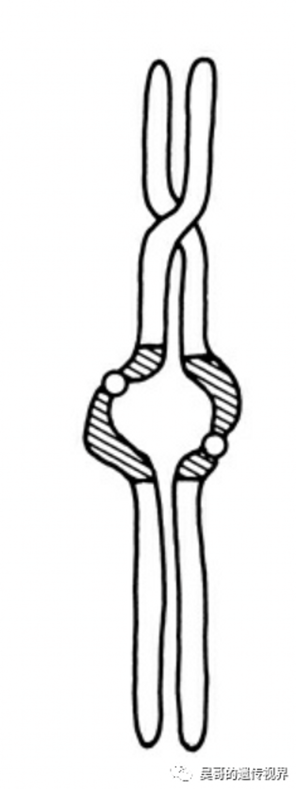 我们知道,普通的(指含常染色质片段的)染色体倒位,在减数分裂期间,如果要发生完全联会,只能形成倒位环结构(如下图):