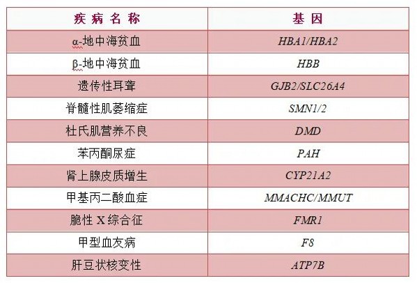 单基因遗传病是指由单个基因变异引起的疾病,代表性疾病包括:地中海贫血、遗传性耳聋、苯丙酮尿症、脊髓性肌萎缩症等。