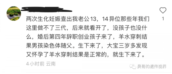 教员曾经说过,“文化思想阵地我们不去占领,敌人就会占领”,遗传咨询也是一样,如果染色体报告没有得到正确的咨询,很容易以讹传讹,轻则造成不良影响,重者甚至导致无法挽回的后果。前几天在小红书上看到的一个帖子,就证明了这一点。